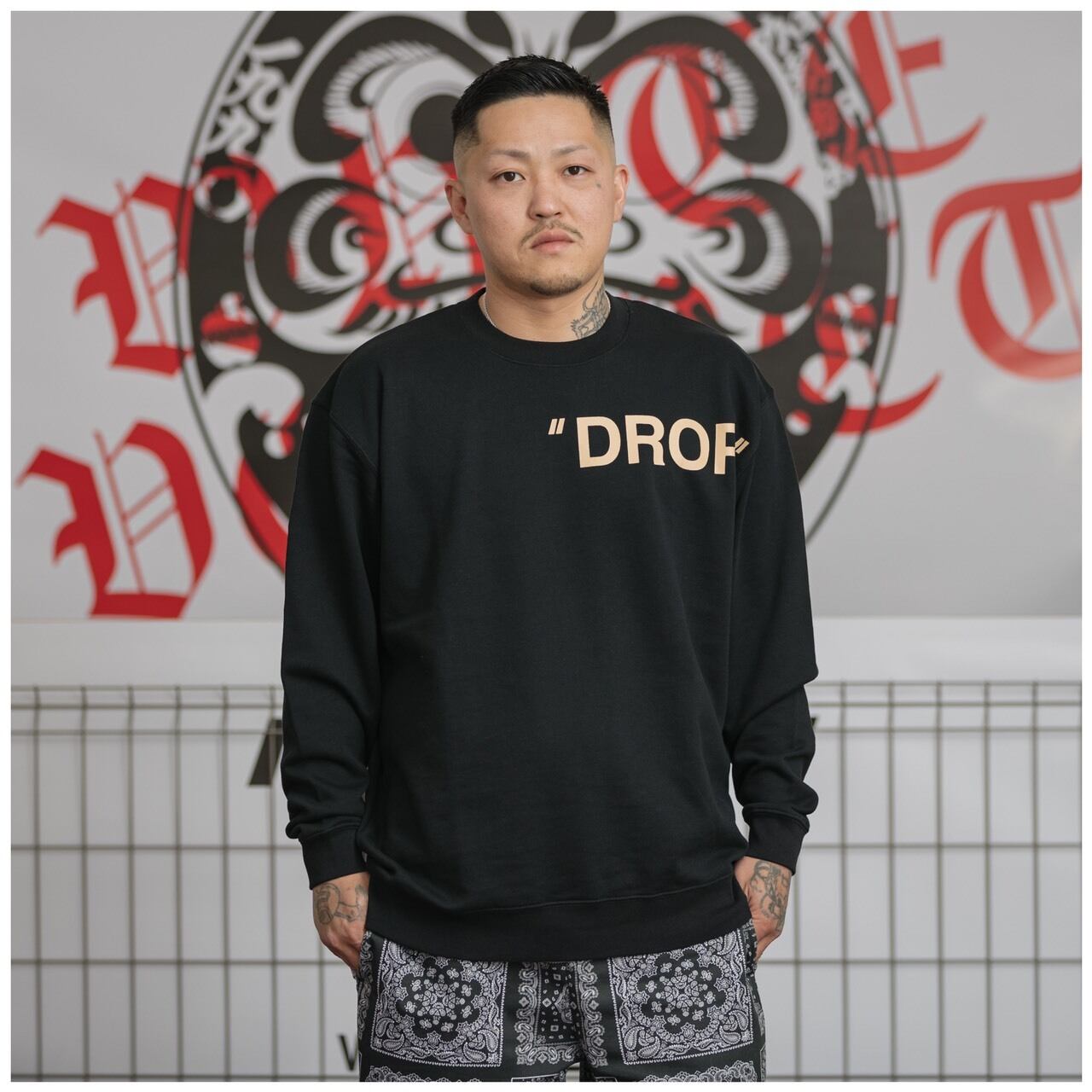 左胸に“DROP"と大きなロゴが際立つ 今季の人気商品となっております。 黒にベージュの文字が他と被らないデザインと なっております。 薄手の生地を採用しているので オールシーズン着用可能です。