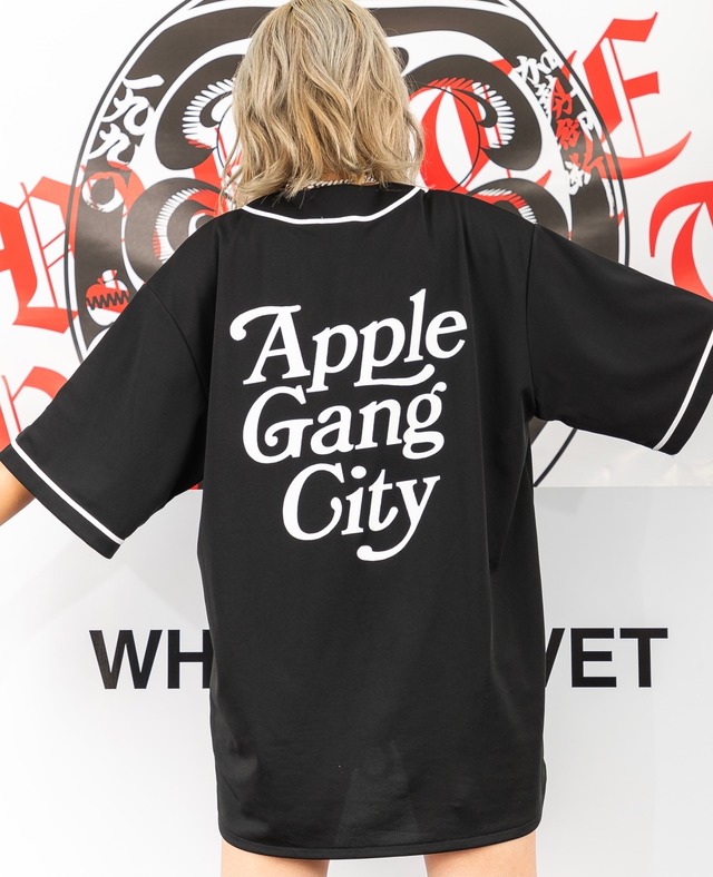 APPLEGANGCITY今夏大人気のメインロゴ。 先行発売でもダントツの人気商品です。 バックにはアメリカのショッピングバックをイメージしたデザインが目を引きインパクト抜群。 完売必須。 サマースウェットパンツとセットアップでもお楽しみいただけます。